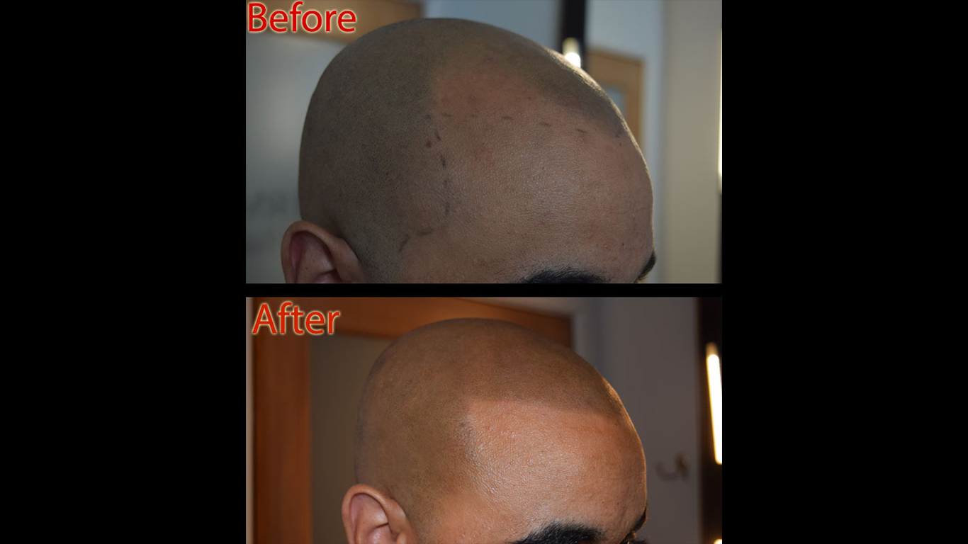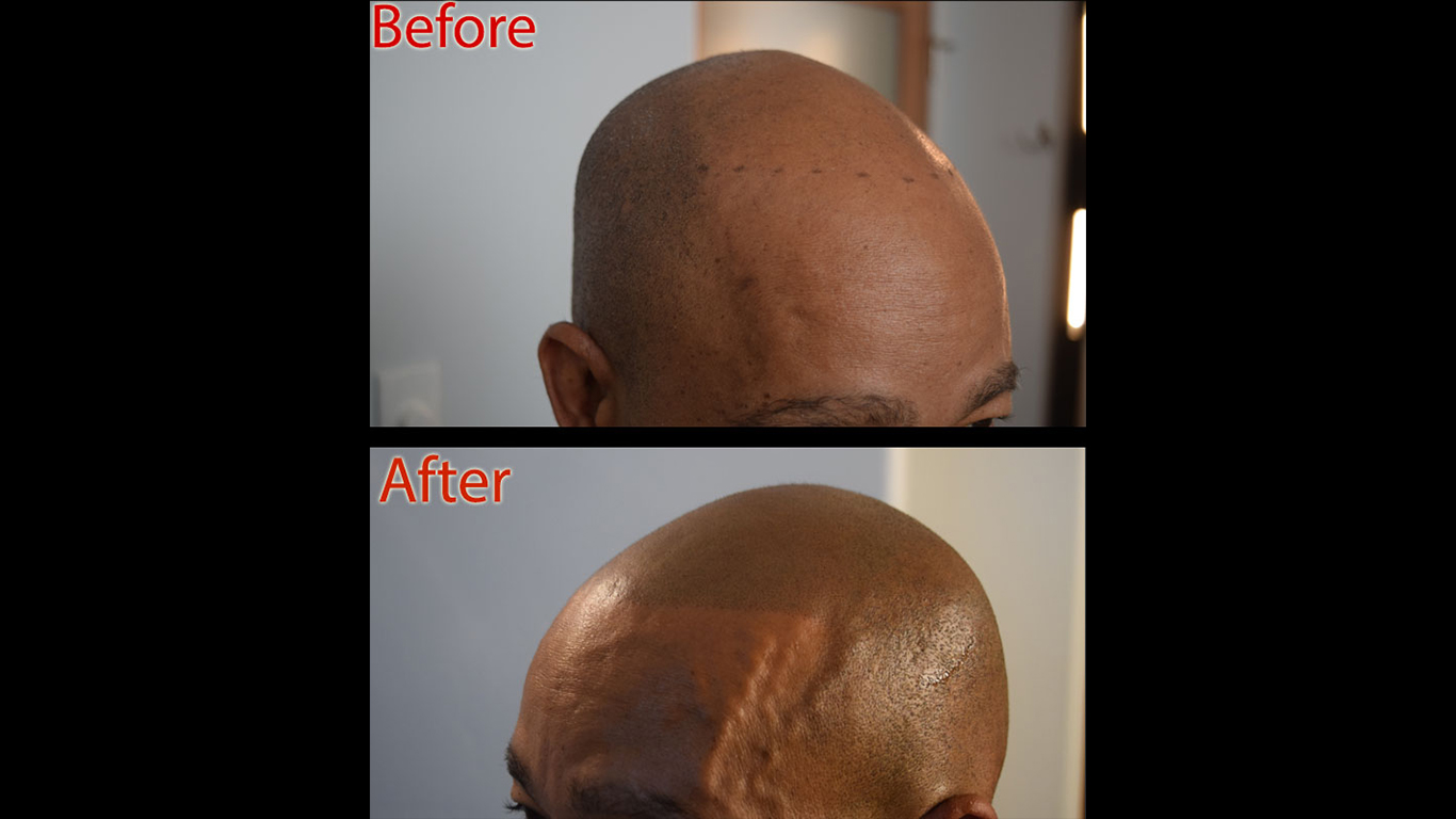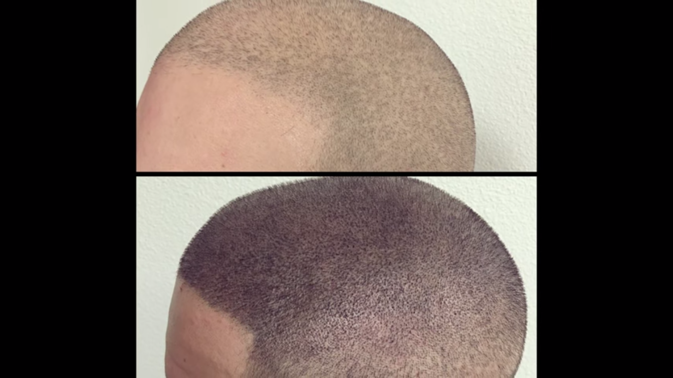 O resultado da técnica Fio a Fio proporciona a aparência de cabelos raspados na máquina número 1, seguindo o padrão de crescimento dos fios (posição, distribuição e movimento) a partir do redemoinho.